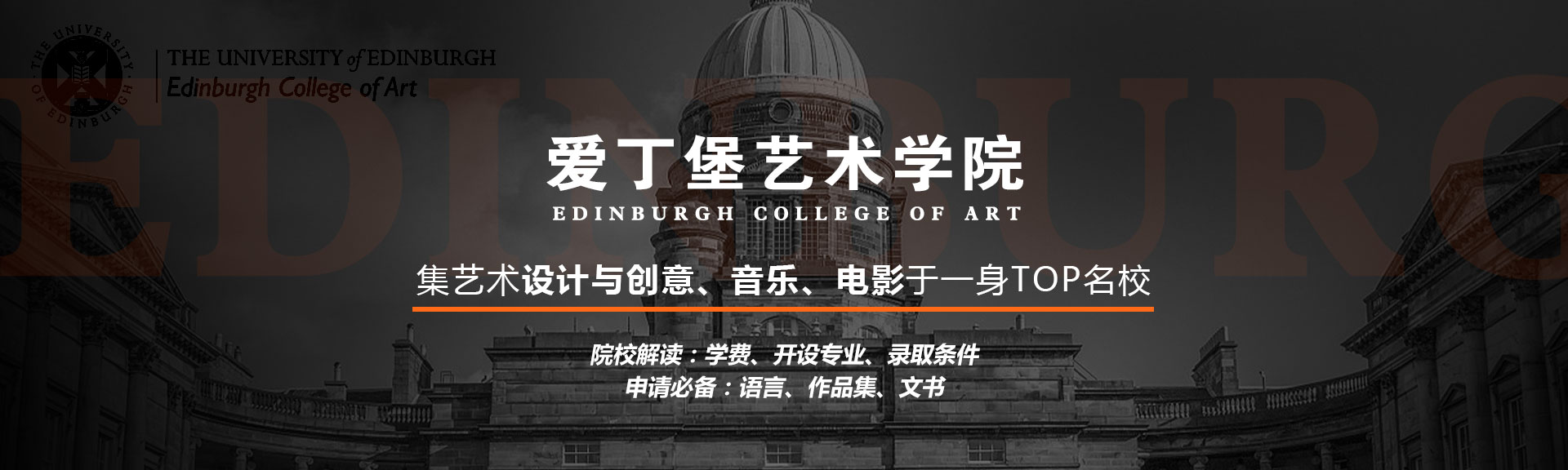 爱丁堡艺术学院是QS全球排名前20的爱丁堡大学旗下的学院,其历史可以追溯到1760年的爱丁堡美术学院,不仅包含艺术、设计、建筑和景观建筑,还包含了艺术史和音乐等专业。其电影和电视制作专业获得了全英国创意技能奖(Creative Skillset Tick)。